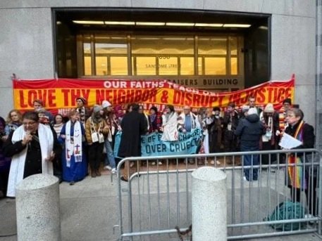 Just a week ago, I participated in a protest held outside the ICE headquarters in downtown San Francisco organized by the Interfaith Movement for Human Integrity, a Bay Area organization of clergy and religious leaders engaged in social justice work. I left inspired and humbled by this act of courageous resistance to our government’s immigration policies.